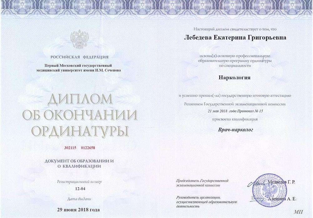 Обращался к Лебедевой Екатерине Григорьевне по поводу зависимости, с которой не мог справиться несколько лет. Боялся идти к врачу, но она сразу расположила к себе — спокойно объяснила, что происходит, и предложила понятный план лечения. Очень понравилось, что не давила, а поддерживала на каждом этапе. Сейчас чувствую себя уверенно и трезво уже несколько месяцев.