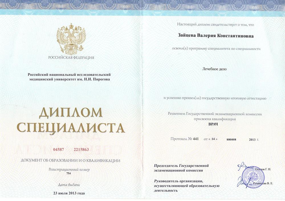 Врач - Зайцева Валерия Константиновна